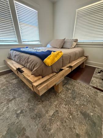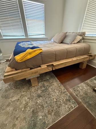 Queen Bed Frame Hand Hewn Reclaimed Antique Barn Wood Hardwood Platform Bed Frame Solid Lumber