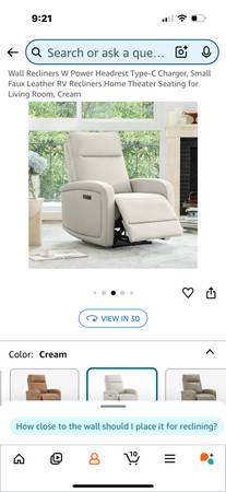 Watson & Whitely Power Recliner Chairs for Adults, Zero Wall Recliners W Power Headrest Type-C Charger, Small Faux Leather RV Recliners Home Theater Seating for Living Room, Cream