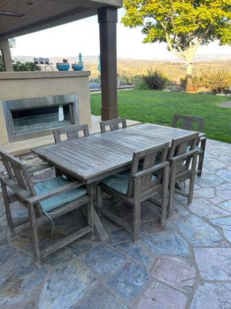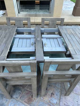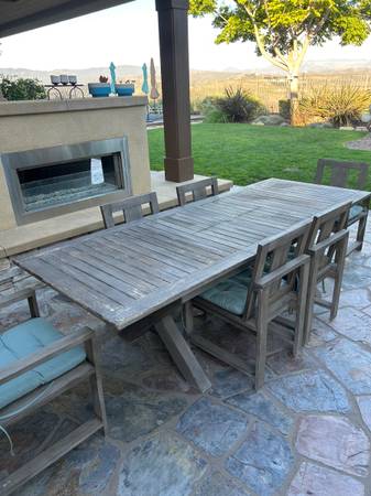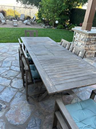 Pottery Barn Outdoor Expandable Table Closed 75 inches, open 102 inches Cover included 2 arm chairs, 4 side chairs