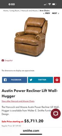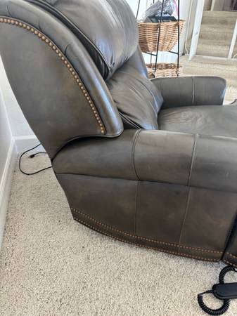 Olive leather power recliner in great shape. We don’t have room for it with new furniture coming.Retails new for over $5k. See pics for specifics.