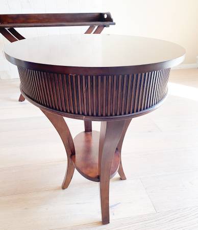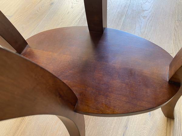 For sale is a really nice, but not perfect, solid wood oval end table. Stamped 'Made in USA'.
