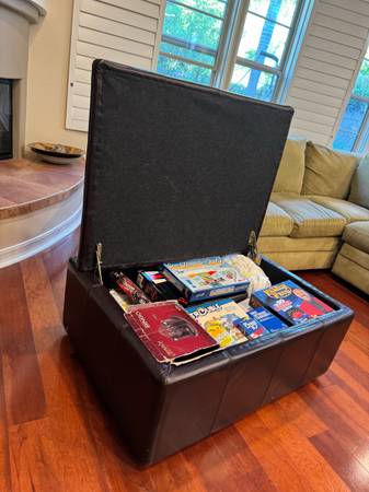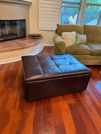 Yes it’s available !! Gorgeous rich dark brown faux leather ottoman with ample storage. Very Good condition 30” x 40” x 17”h Non smoking home Pick up in Sam Clemente