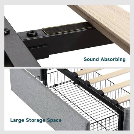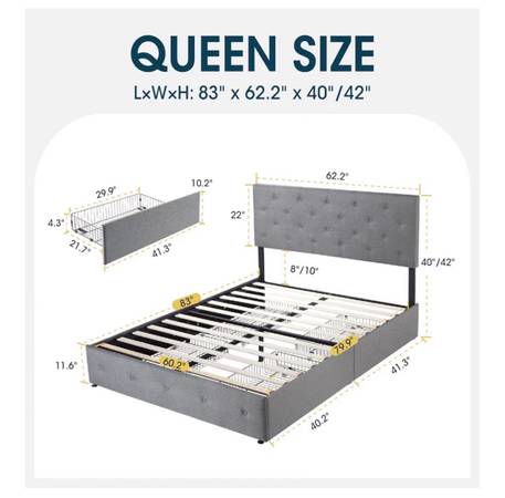 Brand new (still in box) QUEEN upholstered platform bed frame with 4 drawers storage