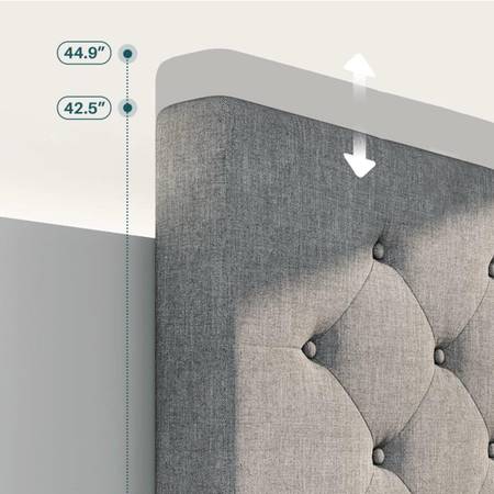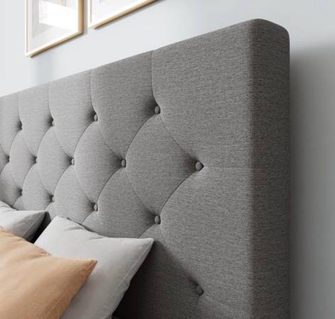 This upholstered platform bed frame is made of comfortable linen fabric. This bed frame comes with sturdy wooden slats and you don’t need to purchase extra springs or any other additional foundation.