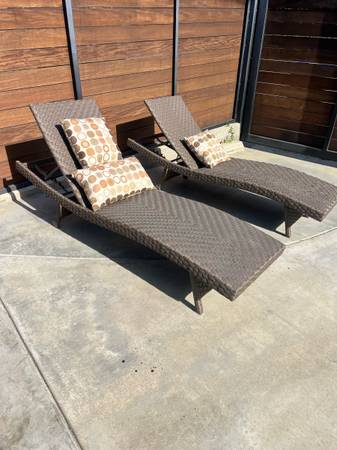 Two beautiful very comfortable fully adjusted outdoor lounge chairs. See pic of under side for quality. 95 for both or make offer.