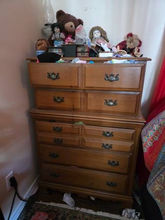 Large solid wood dresser with 12 drawers for ample storage. Features classic design with sturdy construction and vintage-style hardware. Perfect for a bedroom, guest room, or storage in any space. Drawers slide smoothly and the piece is built to last. In perfect condition.