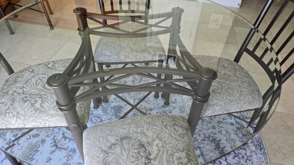 DINING OR KITCHEN TABLE AND 4 CHAIRS GLASS TOP 48" BEVELED TOP EXCELLENT CONDITION VERY COMFORTABLE AND STURDY ASKING $265.00 TEXT OR CALL RICK; 949-929-57 zero zero NO EMAILS PLEASE