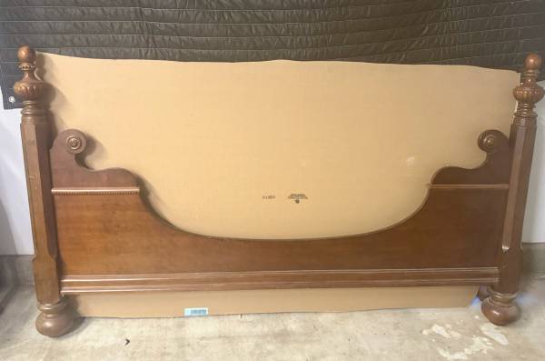 Complete solid hardwood bedframe, head board, foot board, matching wood side rails and metal support rails. Slots for both King and CalKing bedding sizes. Head board 78" h x 80" w, Foot board 48" h...