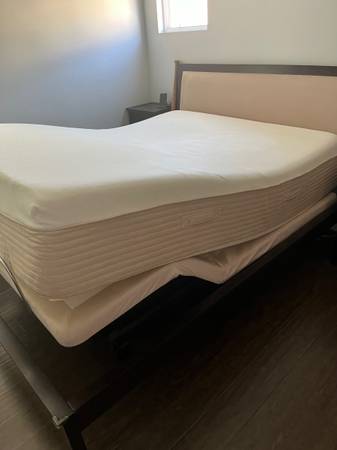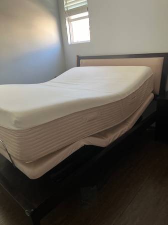 This is a top of the line electric bed with 14 inch high molecular memory foam mattress with built in massage and wireless lit remote which includes zero gravity to help with a great night sleep and help relieve pressure on your back. It is also great to watch TV or work from home in comfort.Paid over $2,000 in excellent shape. Has a mattress cover included. The mattress has a zipper on top so the mattress can be washed and dried. Bed frame included.