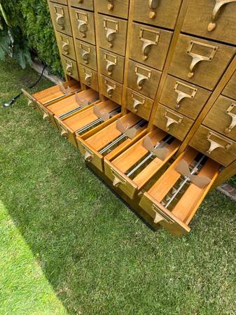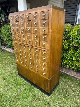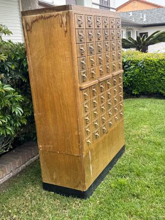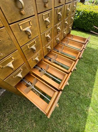 This is a rare find for all card catalog lovers. Gaylord was the premier quality standard for library card catalogs. Constructed of solid maple wood, this one is in very good condition. Interior drawers with beautiful dovetailing details are in mint condition. You can leave exterior as is or do some minor refinishing work to make it complete.