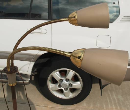 Vintage twin Head Gooseneck Floor Lamp with aluminum shades.
