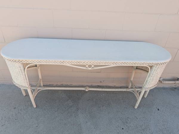 Beautiful vintage wicker console media entryway sofa sideboard table can be refinished need gone asap willing to deliver