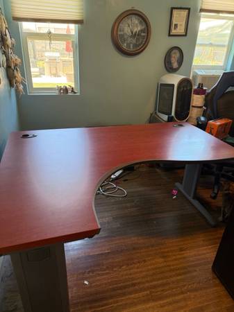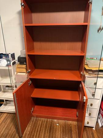 Computer desk L shape with matching glass bookshelf for sale. Would like to sell together and if so, $150.00 for both. OBO. Must be able to pick up in Westminster CA