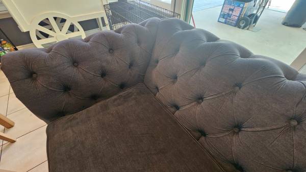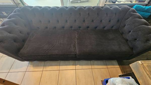 Used couch in good condition. I just got it cleaned. The color is midnight. Its microfiber material, real wood. It retailed for $1689 when we bought it, now its about $2800. We bought it new at the Sofa Shop in YL. These sofas are made to order. Send your best offer. No pets on this couch and we're non-smokers.