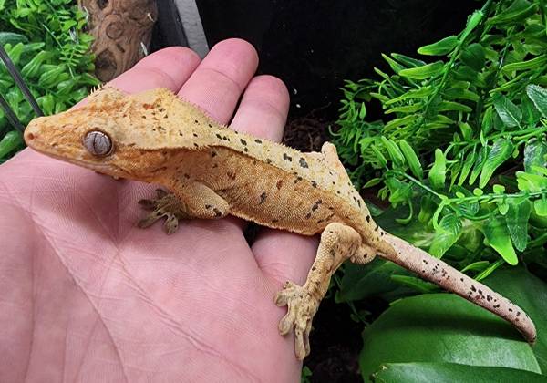 This handsome little one is a male dalmatian tiger crested gecko, ready to find a new home. He hatched on June 13, 2024, and is developing beautifully. You can already see his ink spots and red spots emerging, adding to his unique charm. Weighing in at a healthy 30 grams, he is growing well. We are confident he will bring much joy to his future owner.