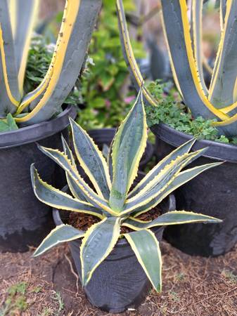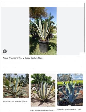 Agave Americana Veriegated Yellow-Green Century Plants Height Over 30 inch growing in 15 Gallon Pot: $75 ea. (3 Available) and 5 Gallon Pot: $25 ea. (over 20 ea. Available) Or Best Offer.