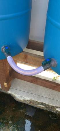 They’re white or blue water barrels with spigot or valve to connect to garden hose to water the garden or to water pressure for mobile car wash