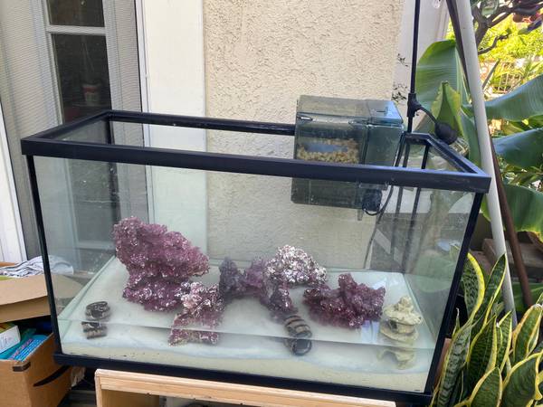 For sale 30 gallons good condition and stand , white sand and many supplies , food .