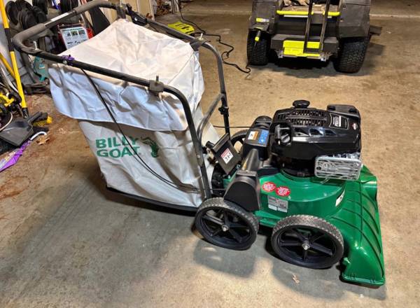 New Billy Goat Lawn Vacuum- Self Propelled. (KV601SP model) Purchased from Lowe's 2 weeks ago. Hasn't even been registered yet. I put oil in it and ran it 1 time for 15 minutes. Full warranty (1 year Billy Goat, 3 year Briggs & Stratton). These self propelled versions sell for over $2,000 new.