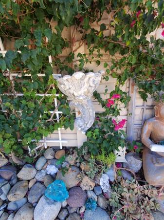 Heavy duty. Has a area to plant in the top. About 2' tall and 1' wide