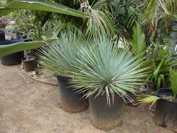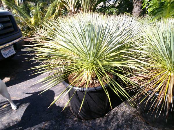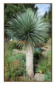 Beautiful very ornamental blue yucca that is highly tolerant of drought, heat and frost, withstanding temperatures as low as -10F (they grow in Washington State!). Forms a perfectly symmetrical pom-pom of leaves. Very easy to grow. Often confused with Yucca rigida, rostrata lacks the stiffness in the leaves making this Yucca more friendly than most in the genus.