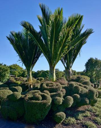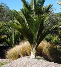 Also known as Rhopalostylis sapida variant "oceana" or Chatham Island, is one of the faster growing palms from New Zealand (most are slow growing). This one also tends to take the sun better than some of the others. Has a unique look with upright fronds representative of a brush used for shaving. Doesn't get too big or too tall.