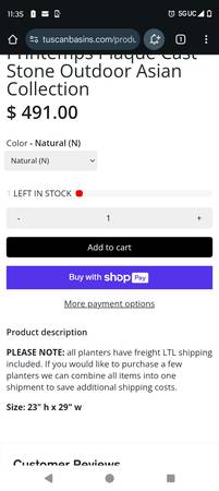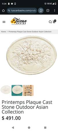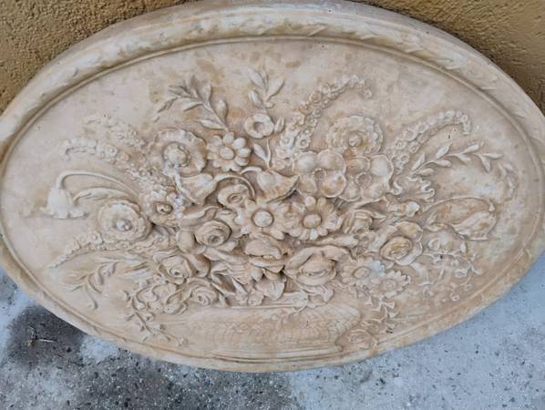 •Made in the USA ∆ DIMENSIONS: 22" inch height x 28" inch wide • Original price was $500 •Can be spray painted to any color you desire. •Stone material...kind of heavy •Hook for wall mounting My #...