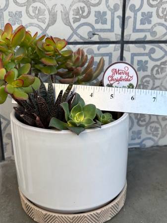Fully rooted and established succulents in medium ceramic planter The planter is like new and has a built in terracotta saucer Measures 5” tall x 6” across and tallest plant is 9” tall Choose...