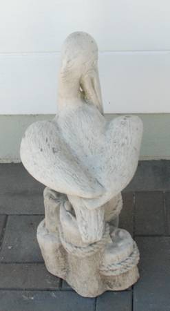 28" Vintage Concrete Pelican Sitting on a Pier Piling Lawn Ornament. Standing pelican bird statue Pelican on post sculpture Concrete pelican figurine figure Outdoor yard art.