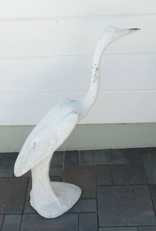 37" Tall Vintage Concrete Crane Garden Ornament. See pictures Has a couple cracks Beak and neck. See pictures Fixable with concrete patch if so motivated.