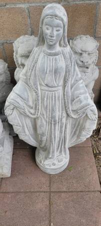 32" by 12" inches tall Jesus $80 38" by 18" Virgen $100 Made of concrete