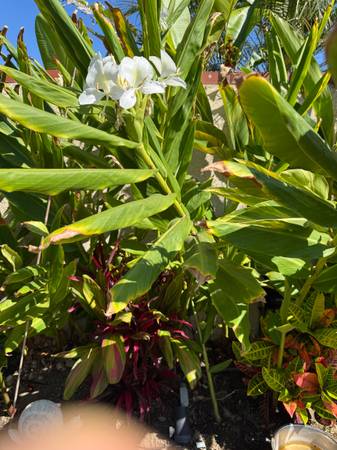 I have a 10 gallon pot filled with mature and healthy Hawaiian Ginger plants in different mature heights and just over 6 feet high. It is an assortment of White, Yellow and Pink Hawaiian Ginger plants. I will place the plants inside a large plastic bag for you to take.