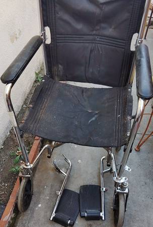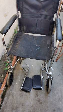 Wheel Chair (Manual) Color black Type: Manual Fabric material Folds easy to transport Foot rests are included Easy to maneuver with great wheels Excellent Condition All sales are final..... No...