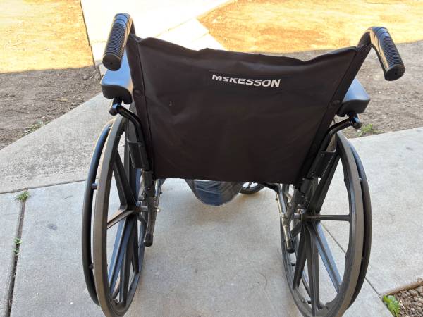 McKesson Wheelchair and leg-sling accessory. All in good working order. I am out of the chair and using a Walker/Cane now. Local Pick-up only.