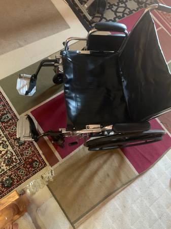 Great Wide leather wheel foldable chair with safety foot stands Amazon sale it for more than $300 in great condition my price is $110 or best offer