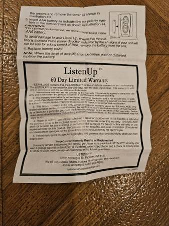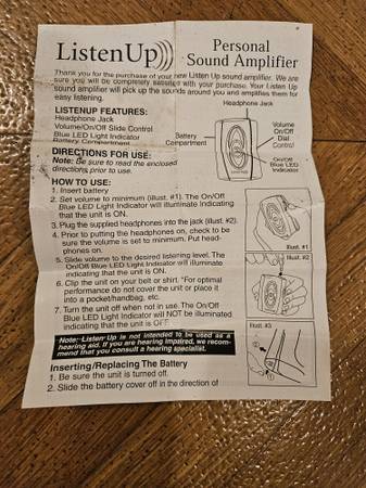 Listen Up Sound Amplifier Hearing Aid Voice Enhancement Listening Device. $15