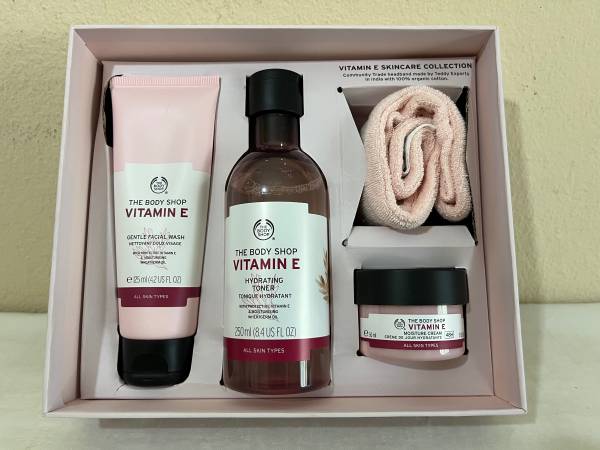 THE BODY SHOP VITAMIN E SKINCARE COLLECTION Brand New In Gift Packaging Box π©·250 ml (8.4 US FL OZ) Vitamin E Hydrating Toner/Tonique Hydratant π©·125 ml (4.2 US FL OZ) Vitamin E Gentle Facial Wash...