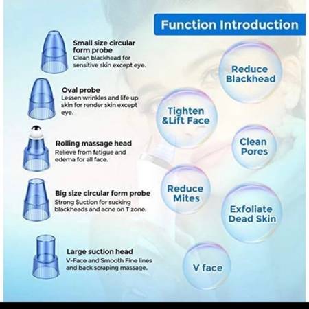 For Blackhead Remover, Vacuum Pore/Acne Cleaner Comedo Suction w/ 6 Multi-function Probes