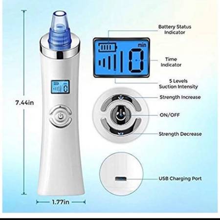 and 5 Adjustable Suction Level for All Skin Types, LED display, USB rechargeable lithium battery.
