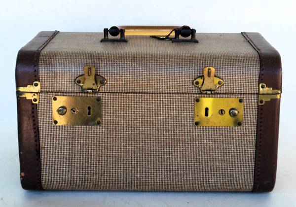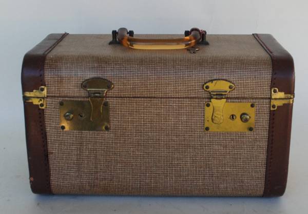 Vintage Tweed Luggage, Train Case, Makeup Case, Mid Century Train Case, Mid Century Makeup Case. Has both keys. All original • Measures 10" tall including handle (7 1/2" tall without handle) x 14"...
