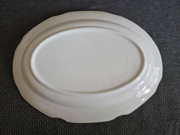 Ivory Colored Oval Ceramic Serving Platter measuring 13.5" x 10." Actual area of the platter for food is 10.5" x 7." Scalloped edges. Unbranded. Excellent condition with no chips, cracks or...