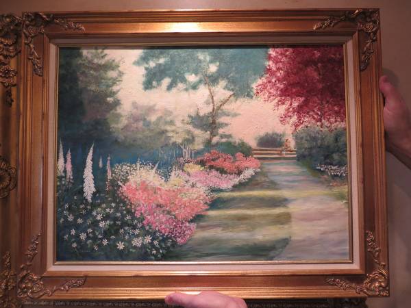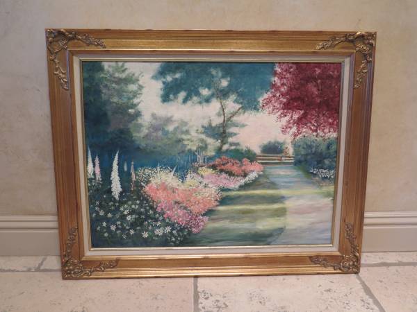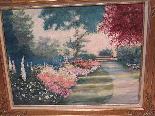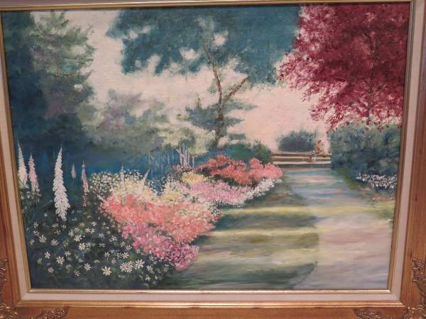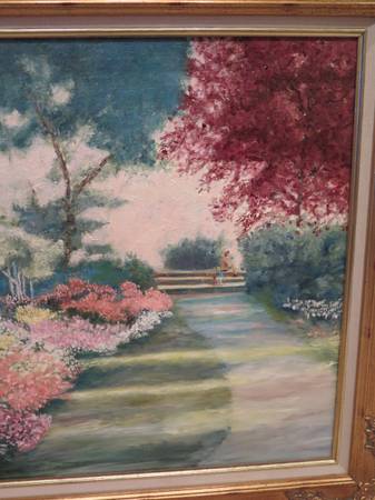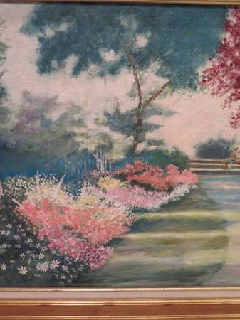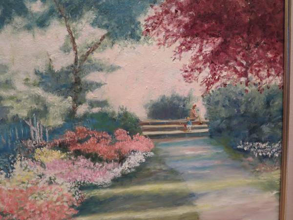 Landscape Oil Painting Garden ART Child Playing Mother Reading...