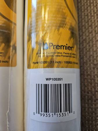 Lot of 2 Premier Pre-Carbon Yellow WP105351 Water Filters. Brand new in sealed packages.