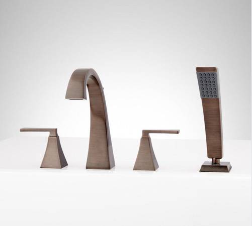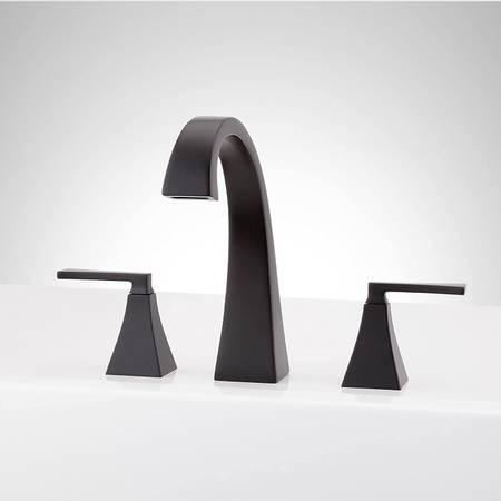 Signature Hardware SHKW3RT2 Key West Deck Mounted Roman Tub Filler Faucet - Valve Included Signature Hardware SHKW3RT2 Features:Covered under Signature Hardware's 25 year limited warrantyConstructed of brassWidespread deck mounted installation 3 hole faucet with 8" - 16" faucet centersOperated with ceramic disc valve cartridges, guaranteeing a drip free performance and unparalleled reliabilityRough in valve needed for installation sold separatelySignature Hardware SHKW3RT2 Specifications:Height: 8-1/8" (bottom to top of faucet)Spout Height: 4-1/2" (deck to spout outlet)Spout Reach: 9" (center of faucet body to center of spout outlet horizontally)Flow Rate: 17.2 gallons-per-minuteMaximum Deck Thickness: 2-1/4" (cannot mount on thicker decks)Faucet Centers: 8" - 16" (center-to-center distance between handle installation holes) Double Handle Matte Black.