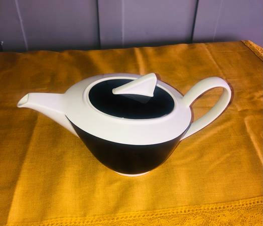 Vintage Villeroy Boch Wonderful World Easy Collection, Black and White Tea Pot with the cover.