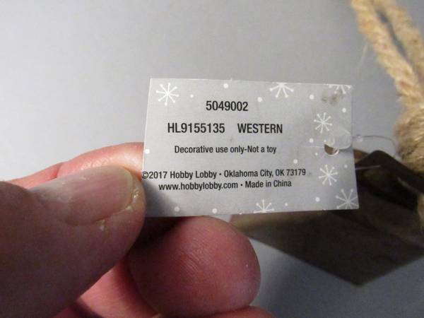 Western Style Decorative Cowbell Ornament Brand New - Hobby Lobby (2017) Hang it on your Christmas Tree or Front Door Size - 3-1/4" x 2-1/2" x 3-3/4" h + 7.5" rope