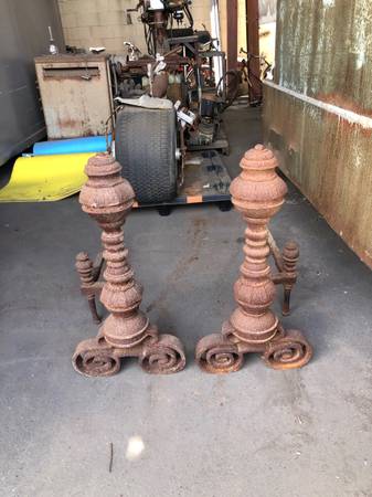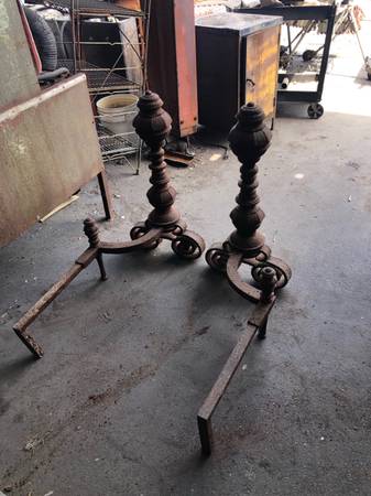 Massive fireplace andirons 32 inches tall 33 inches long 7 inches wide