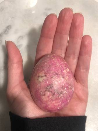 This vintage Alabaster Pink Marble Stone decorative Easter egg is a unique and handmade collectible piece. Its marbled pattern and pink color make it a beautiful addition to any room, especially during the Easter season. Crafted from marble, this alabaster egg is a one-of-a-kind item that can be appreciated by collectors or those looking to add a touch of elegance to their decor.