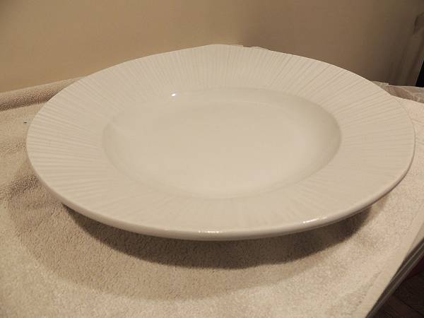 Brand New; NEVER USED. Selling three (3) Ceramica brand, elegant, tear dropped shaped catering platters @ $25.00 each. Great for catering & events (salads, pasta, turkey, meats, grilled vegetables) and more. Endless uses! Large size (19.5" L x 16.5" W) Color: White. Made in Italy. Ceramic. **All three sold together = $60.00