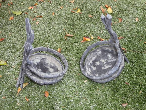 They are about 5 inches in diameter and 8 inches tall. Both for $25. Phone # is a landline. Leave message.